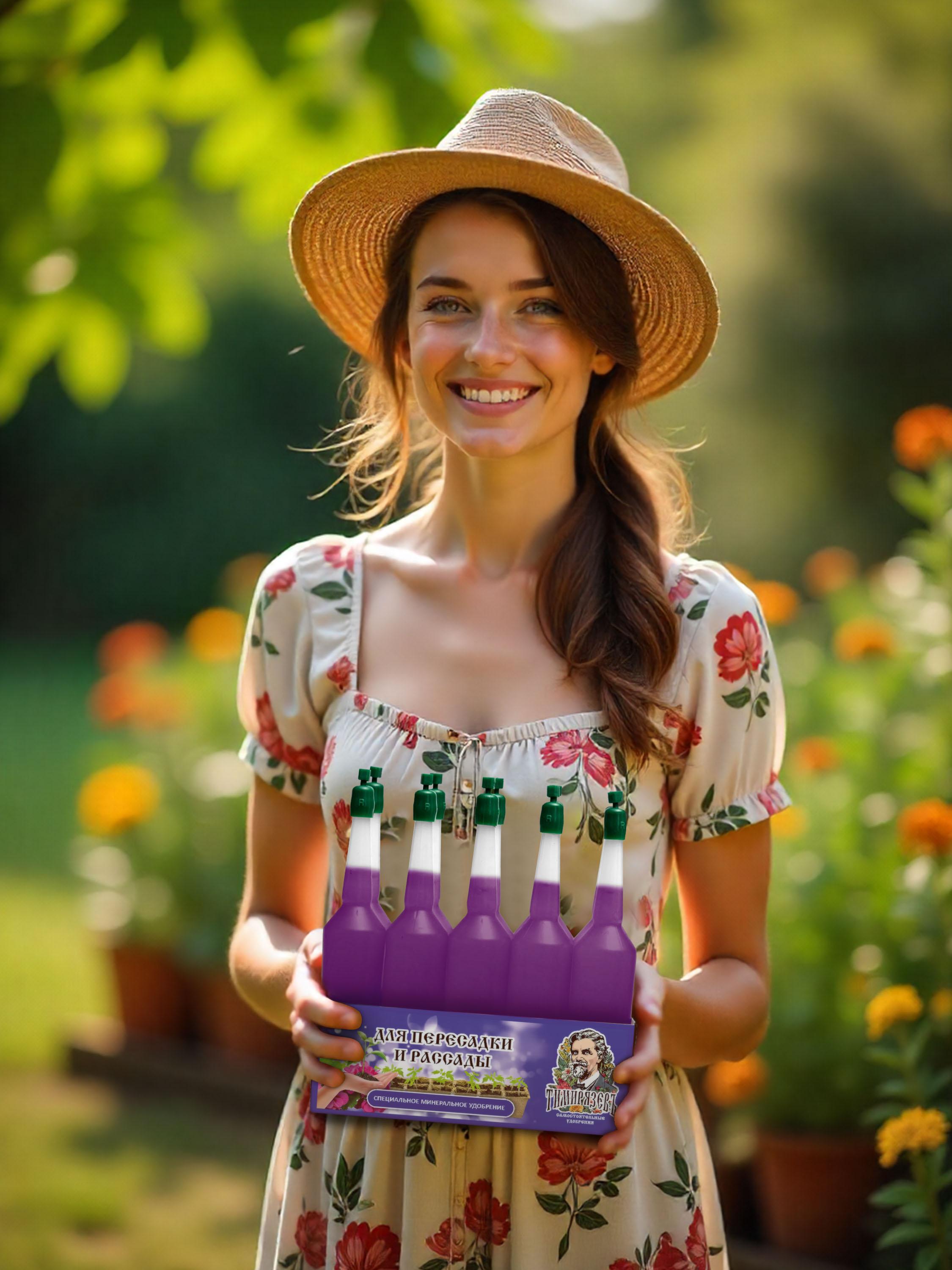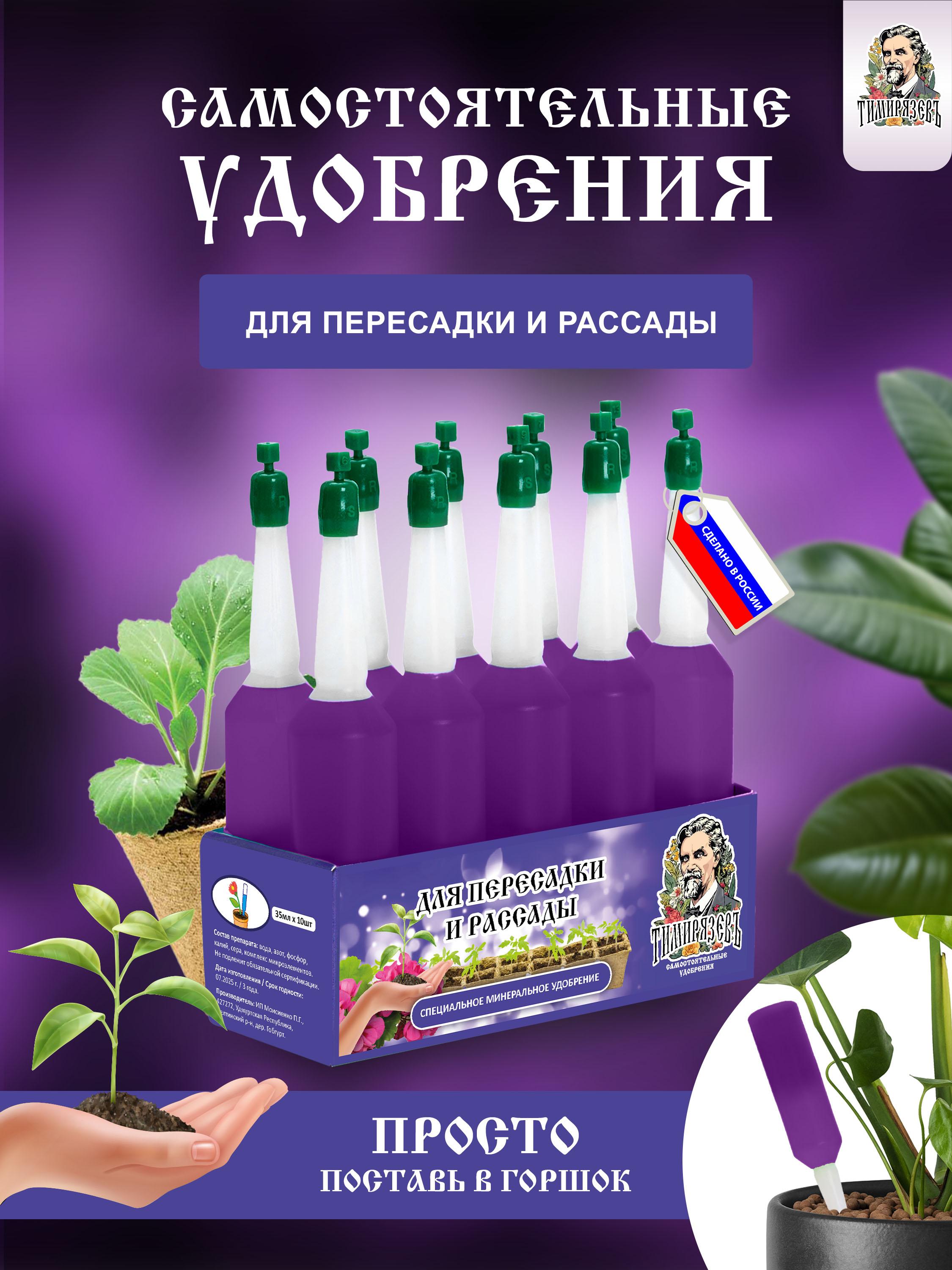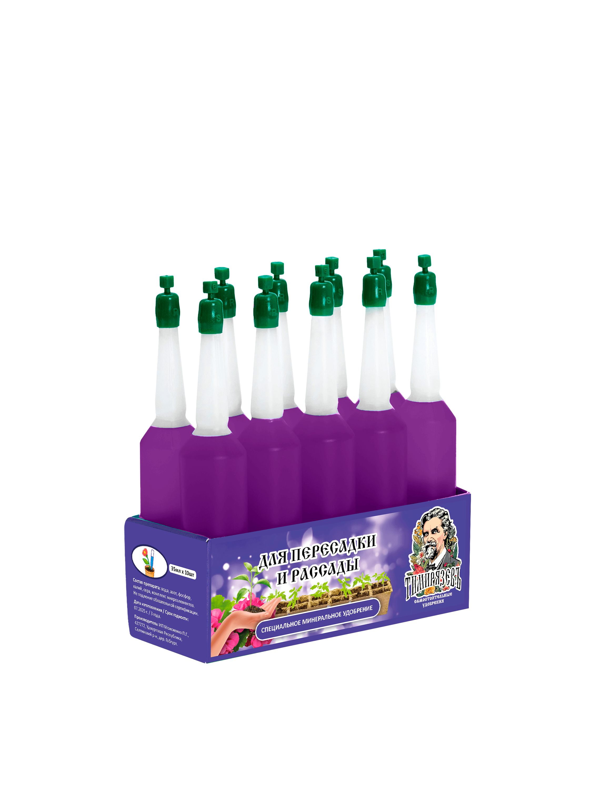 Наши специальные минеральные удобрения разработаны специально для успешного старта ваших молодых растений. Это самостоятельное средство обеспечивает оптимальное питание на всех этапах выращивания рассады, начиная с первых дней жизни. Ключевые преимущества: - Комплексный состав: Содержит сбалансированное сочетание азота, фосфора, калия и серы, а также комплекс микроэлементов, необходимых для здорового роста и развития растений. - Стимуляция корневой системы: Удобрение способствует быстрому формированию мощной корневой системы, что является залогом устойчивого развития рассады. - Устойчивость к стрессам: Благодаря уникальной формуле, молодые растения становятся более устойчивыми к стрессу пересадки в открытый грунт или другой субстрат, обеспечивая плавный переход без задержек роста. Использование этого удобрения гарантирует вам здоровую, крепкую рассаду, готовую к успешному росту и цветению! 1. Для домашний цветов. Срезать или отломить колпачок крышки флакона, вставить в горшок носик флакона на расстоянии не менее 5 см от стебля под углом 45 гр. Устанавливать в горшок сразу после пересадки декоративных растений. 2. Для рассады. Срезать или отломить колпачок крышки флаконов, вставить в контейнер для рассады с интервалом каждые 15-20 см см под углом 45 гр. Применять за 2 недели до высадки из рассадника. 3. При поверхностной обработке почвы (полив под корень) разбавить содержимое флакона в 5-ти литрах воды, тщательно перемешать и полить растение или рассаду. 3. Листовая обработка рассады не рекомендуется. При листовой обрабобкет пересаживаемых домашних растений разбавить содержимое флакона в 1-м литре воды и опрыскать листву распылителем. Допустим осадок. Взбалтывать перед применением. Не допускать попадания прямых солнечных лучей в момент применения. Системное питание растения из флакона (его опустошение) происходит в течение 10-15 дней. Рекомендуется использовать при каждой пересадке декоративных растений и перед высадкой рассады в грунт.